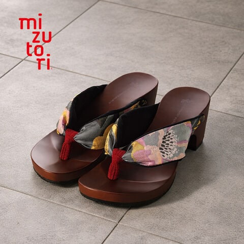 下駄 サンダル 和風 レディース おしゃれ 鼻緒 日本製 かわいい 履き物 厚底 クッション ヒール ブロックヒール みず とり 和装 着物 浴衣 甚平 成人式 コスプレ 黒 和柄 履物 つっかけ ゲタ