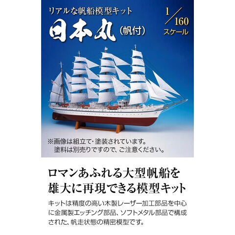 【R】木製模型 帆船 1/160 日本丸 帆付(帆船「日本丸」を精密に再現した模型 木製の1/160帆船模型の手作りキット 精巧で美しい木の模型)