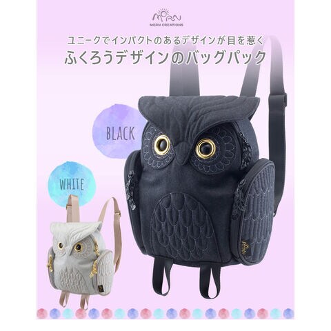 ユニークでインパクトのあるデザインが目を惹く、ふくろうデザインのバッグパックで、本物の梟みたいに、かわいい丸い目が特徴的です。