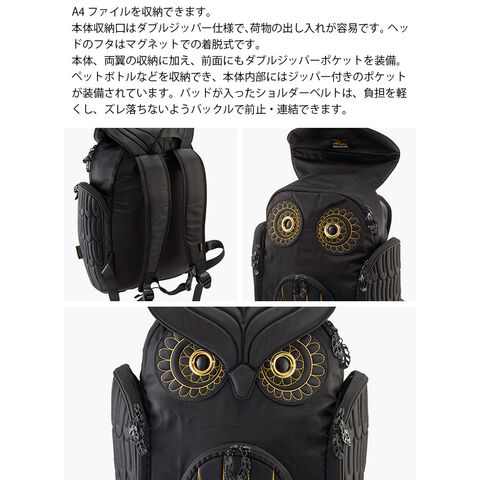 MORN CREATIONS ミミズククラシック バックパック ゴールドエンブロ Lサイズ OW-381(ブラック ふくろう)