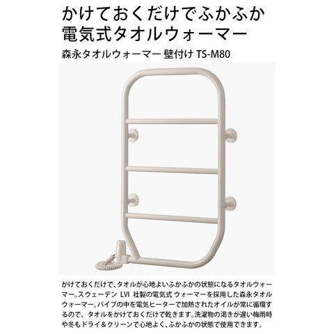 森永タオルウォーマー 壁付け TS-M80(タオル掛け タオルかけ ドライ 洗濯物 タオル 乾燥 乾く 乾きやすい 脱衣所 部屋干し タオルハンガー)