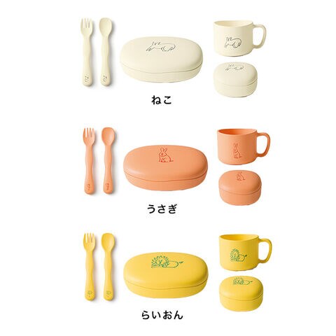 【サイズ(約)】[プレート]15.8×11.3×5.3cm [ボウル]10×9×6.1cm [コップ]Φ7.5(10)×5.9cm [スプーン]14×2.8cm [フォーク]14×2.5cm