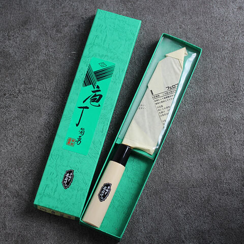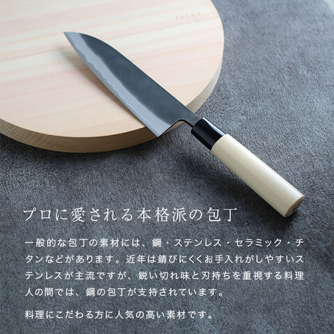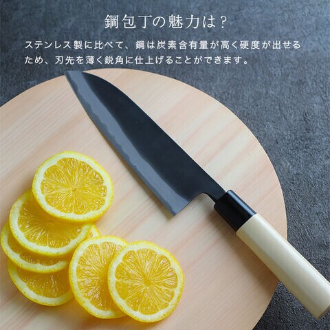 【注意】※こちらの包丁は、一丁ずつ砥石を用いて『手研ぎ』で仕上げ、その証明として「手研ぎ本刃付」シールを箱に貼ってあります。※鋼の包丁は錆び易いです。包丁に付着した水分や汚れを取り除き、湿気の少ないところで保管して下さい。長期保管をする際には刃物用の油を塗って湿気の少ないところで保管して下さい。※食洗器に入れないでください。※冷凍食品は切らないでください。
