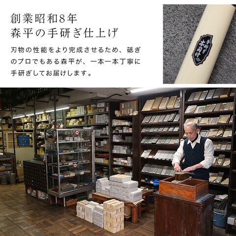 刃物の性能をより引き出すため、砥ぎのプロである森平が一本一本丁寧に手研ぎして仕上げています。