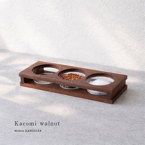 モダン神具膳 Kacomi walnut(神棚 ごはん お供え 器 セット 小 神具セット 飾り モダン シンプル おしゃれ 神具 神棚の里 日本製 国産 ナチュラル ウォールナット 木製 食器 台 神棚用神具 木製神具 小さい 木)
