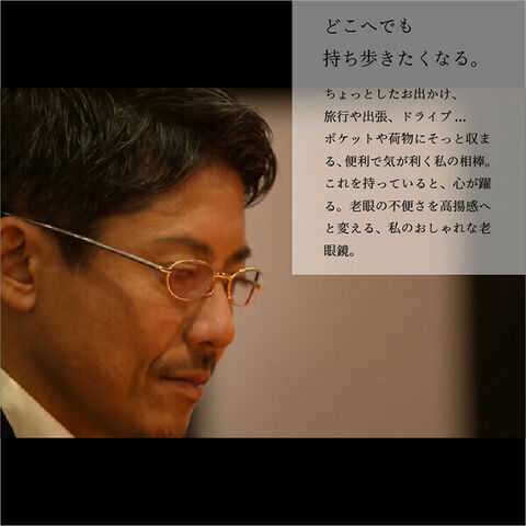 持ち運びに便利な超コンパクト設計。折りたためば ポケットにすっぽり収まる スタイリッシュな老眼鏡です。