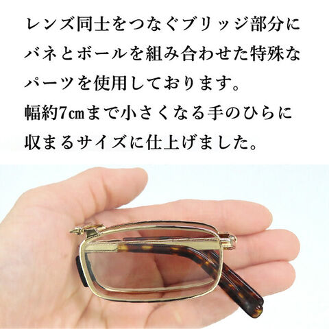 【サイズ(約)】[折り畳み状態]W7.3×H4cm [フレーム幅]W13×H2.8cm [ツルの長さ]13cm [レンズ幅]5cm