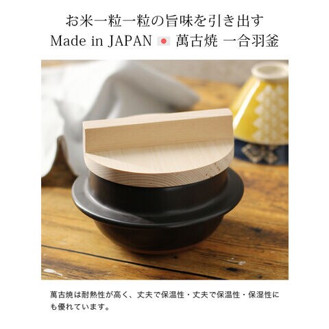 1~2人分のごはん(1合)を簡単に美味しく炊くことができる萬古焼の羽釜ごはん鍋。
