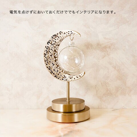置くだけで空間の雰囲気をやさしく変えるLEDランタンです。月をイメージしたデザインがインテリアとして程よい存在感を演出します。やわらかな光が広がり、寝室やリビングでのくつろぎ時間にぴったりです。単4電池3本のコードレス仕様で、テーブルや棚、玄関など場所を選ばず設置可能。ガラスと合金のアンティーク風デザインで、消灯時もオブジェとして楽しめます。日常にやさしい光を取り入れ、心地よい空間づくりに役立ちます。