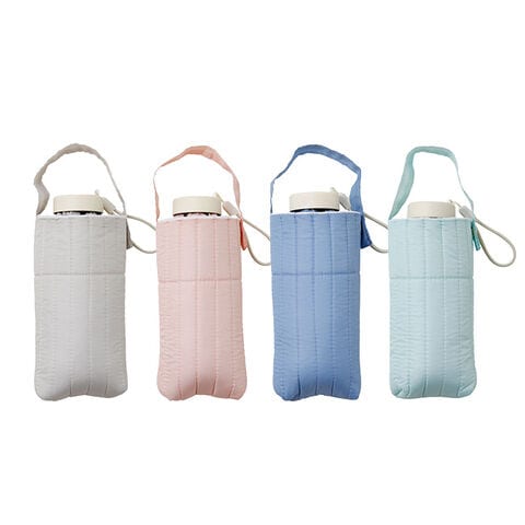 韓国キルティング「ヌビ」をイメージした、ふんわり可愛い専用ケース付き。傘本体は、UVカット・遮光・遮熱機能を備えた折りたたみ式の晴雨兼用傘です。