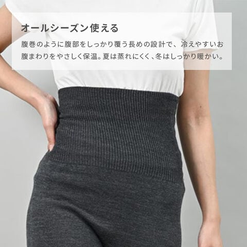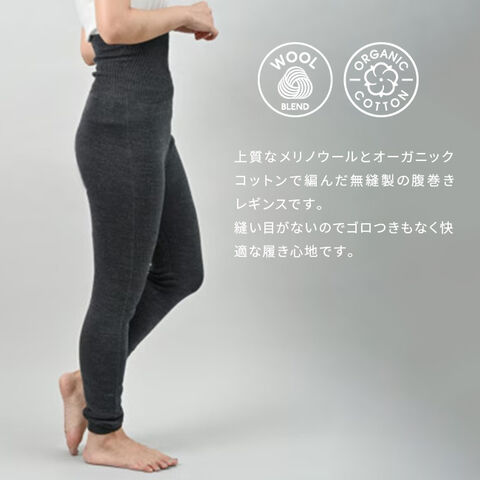 【チャコールグレー】 ぬいめのないウールコットンのはらまきレギンス(腹巻レギンス 腹巻き レギンス コットン ウール レディース インナー)※1枚目の画像は代表イメージのため色・柄が異なる場合がございます。2枚目以降で色・柄をご確認下さい。