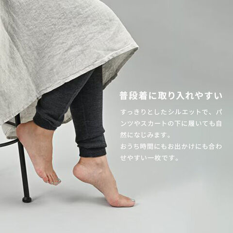 ・ウールとコットンを組み合わせた、ぬいめのない無縫製のはらまきレギンス。