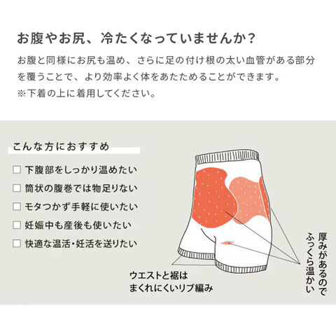 ・お腹からお尻、太もも付け根までをやさしく包み込み、冷えやすい下半身を心地よく整えます。