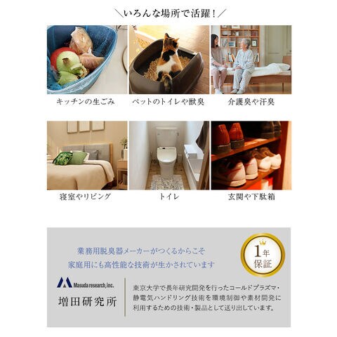ペットやタバコの臭いのするリビングや、介護をしているお部屋、独特な臭いが気になるトイレや玄関、ファブリック類のニオイがある寝室などにおすすめ。