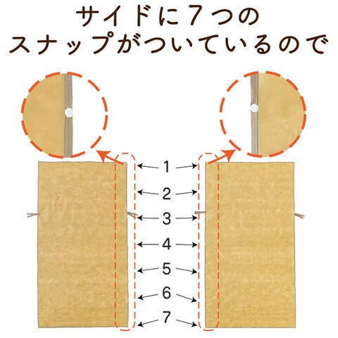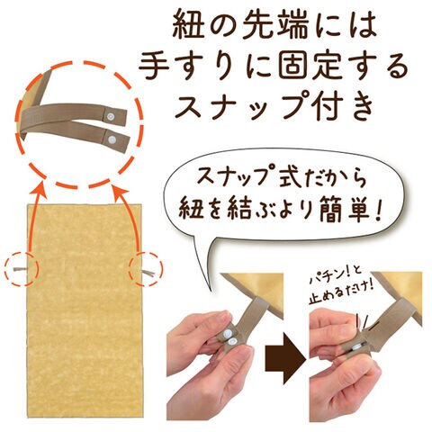 ●両側にホック付きテープがあり、手すりに固定が可能。