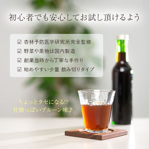 国内製造の蔗糖、黒糖、オリゴ糖をベースに、野草・野菜・果物など約60種の素材を発酵・熟成。酵素原液ならではの、体にやさしく馴染む仕上がり。
