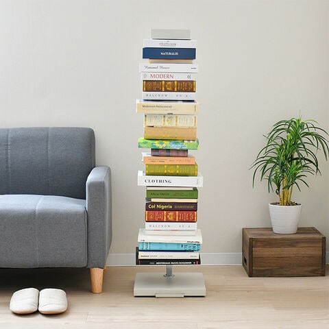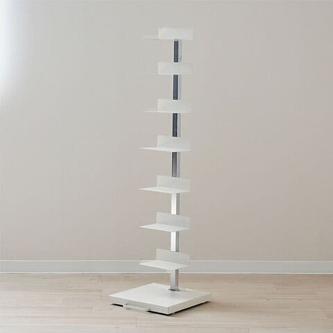 空間を無駄なく活用できるキャスター付きブックタワーは、縦のスペースを最大限に活かしながら、軽快な移動を実現する一台。限られたスペースでもたっぷり収納できるので、一人暮らしやミニマルなインテリアにもぴったりです。