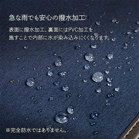 ・撥水加工+PVC裏加工で、急な雨にも対応。