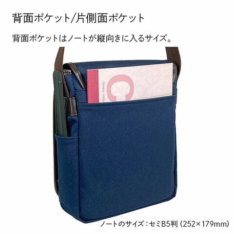 【仕様】[対応サイズ]B5 [正面]ファスナーポケット [背面/片側面]オープンポケット [正面フラップ内側]オープンポケット [メインルーム]ファスナーポケット、オープンポケット×2、ペン差し