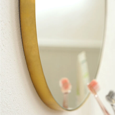 【F】Brass oval mirror HS3684(壁掛けミラー 楕円 オーバル アンティーク 風 洗面鏡 洗面所 トイレ 真鍮 鏡 楕円形 壁掛け)