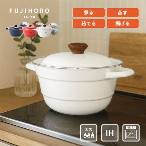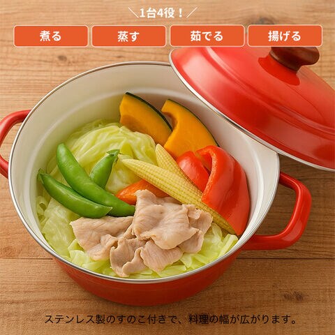 【レッド 323677】 富士ホーロー オールインワン 27cm スノコ付き(ホーロー ホーロー鍋 琺瑯 琺瑯鍋 蒸し器 揚げ物 天ぷら鍋 卓上鍋 IH ガス)※1枚目の画像は代表イメージのため色・柄が異なる場合がございます。2枚目以降で色・柄をご確認下さい。