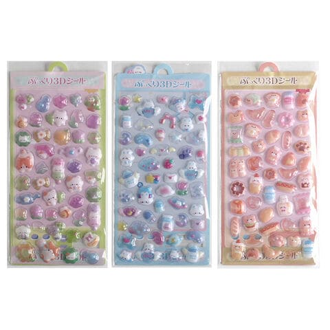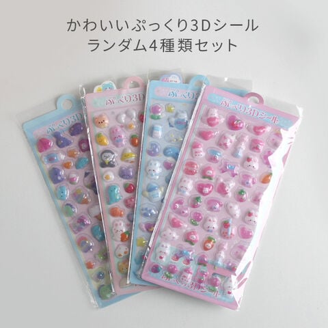 即納 ぷくぷく3Dシール 《4枚セット》(シール ぷくぷく 立体 ぷくぷくシール ぷっくりシール ぷくぷく立体シール 流行)