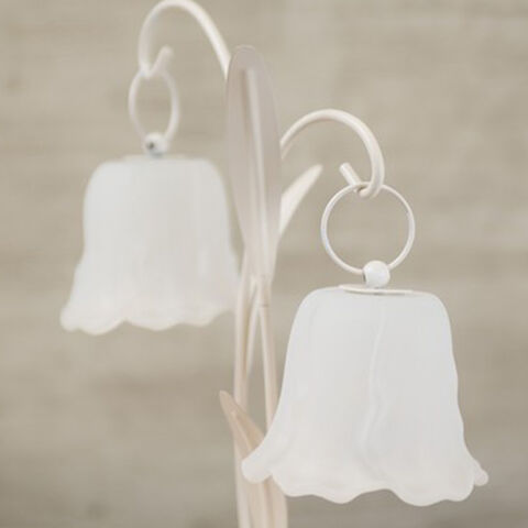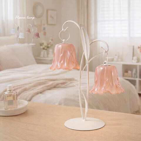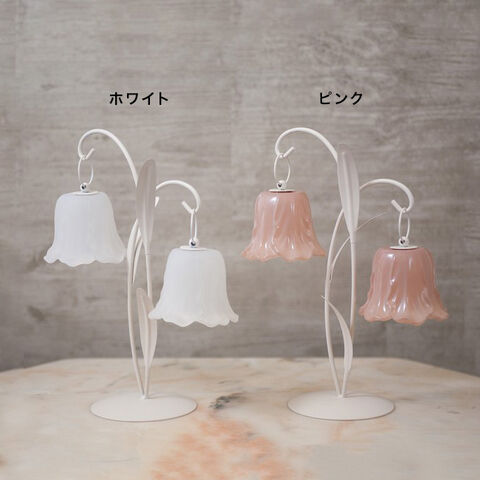 葉っぱ型の本体からガラスの花が2つ揺れる、華やかさと上品さを兼ね備えたフラワーランプ。灯りをともすと花びらがやさしく透け、ふんわりとした光が空間に広がり、リビングや寝室でのくつろぎ時間に最適です。高さのある2灯デザインで、置くだけでも空間の印象を変える存在感が魅力。電池式のコードレス仕様で設置場所を選ばず、模様替えにも便利です。ホワイトとピンクの2色展開で、インテリアや贈り物にもおすすめです。