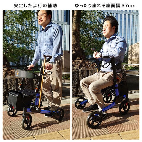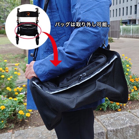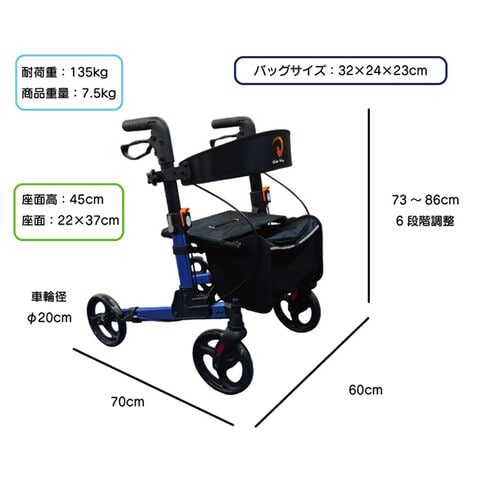 【サイズ(約)】[本体]幅60×奥行70×高さ73~86cm [折りたたみ時]幅25.5×奥行70×高さ73~86cm [座面サイズ]幅37×奥行22cm [車輪径]直径20cm [座面高]45cm [バッグサイズ]32×24×23cm