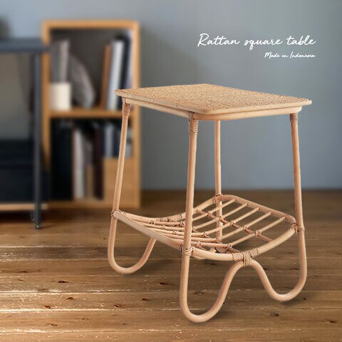【T】ラタンスクエアテーブル(ラタン 小さい テーブル 籐 カフェテーブル おしゃれ 一人暮らし コーヒーテーブル サイドテーブル ベッドサイドテーブル 北欧 風 韓国 インテリア リゾート アジアン 家具 ラタンテーブル)