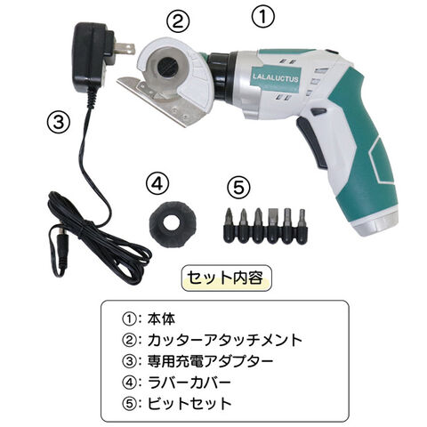 LALALUCTUS ラララクタス コードレス電動カッター&ドライバー LT-800(電動カッター 兼用 電動ドライバー セット DIY 家庭用 電動工具 ドライバービット 組み立て 解体 大掃除 段ボール 絨毯 切る カット)