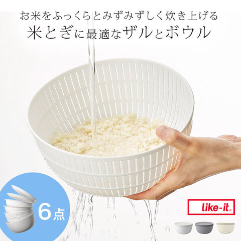 like-it ライクイット 米とぎにも使えるザルとボウル 6点セット(ザル ボウル セット ザルボウル ザルボウルセット 米とぎ)【ベージュ 451702】※1枚目の画像は代表イメージのため色・柄が異なる場合がございます。2枚目以降で色・柄をご確認下さい。