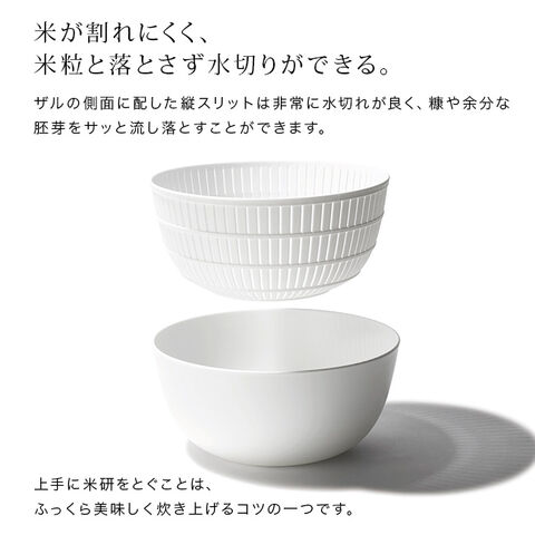 ●お米とぎに。手になじむやわらか素材で、米粒がつぶれにくくふっくら炊きあがる。最大4カップ対応。