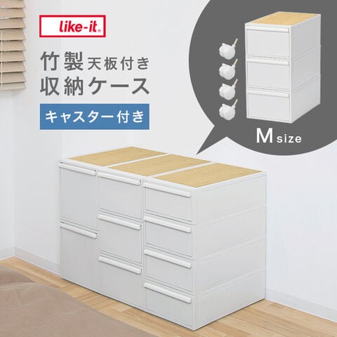 like-it ライクイット クローゼットシステム 引出し M 3個組 竹製天板付き オールホワイト キャスター付き(衣類ケース)【T】