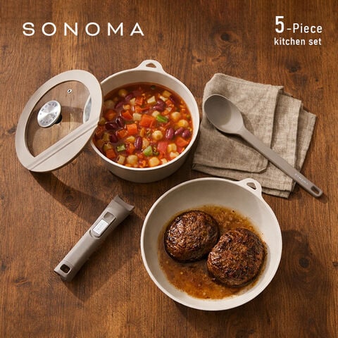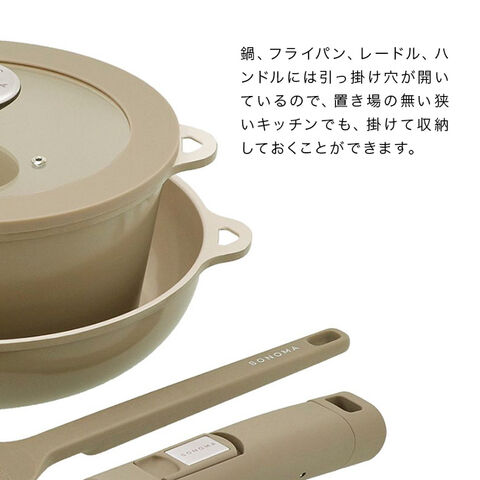 Liv plus リブプラス ソノマ 5点セット(フライパン セット IH 取っ手が取れる おしゃれ 軽量 食洗機対応 かわいい 24cm)