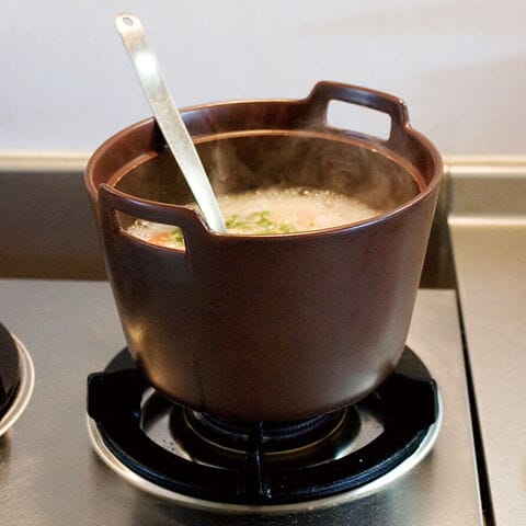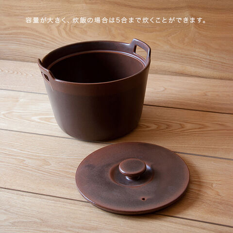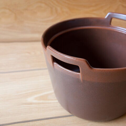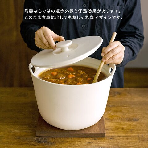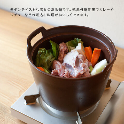 ・直火、オーブン、電子レンジに使える耐熱陶器製で、遠赤外線効果によりじんわり火が通ります。