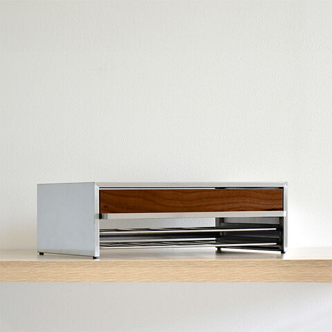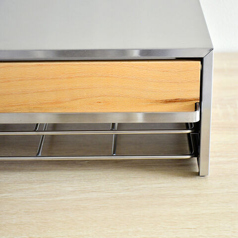 【素材】[本体カバー・引出し]ステンレス(SUS430) [取手・ワイヤートレイ]ステンレス(SUS304) [内部フレーム]スチール(クロムメッキ) [前面板]ブナ天然木積層合板(芯材スギ天然木)※新潟県南魚沼産の主伐材を使用