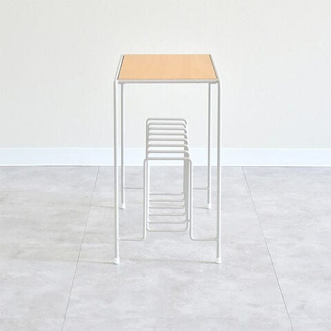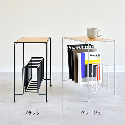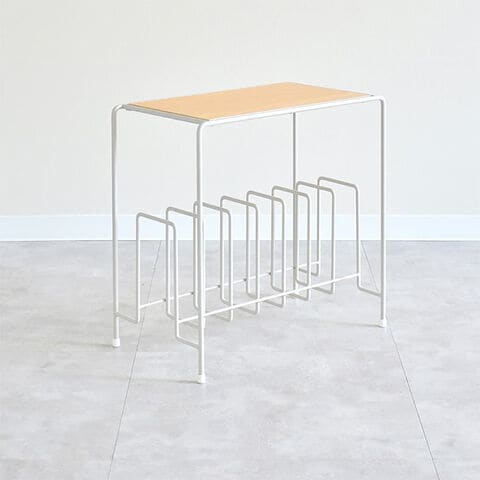 雑誌やタブレットを“魅せながら”収納できるマガジンラックと、便利なサイドテーブルを一体化。
