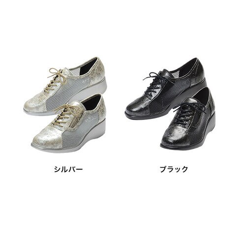 1-2W 【ブラック:24.0cm】 サイドメッシュの花柄シューズ ※1枚目の画像は代表イメージのため色・柄が異なる場合がございます。2枚目以降で色・柄をご確認下さい。