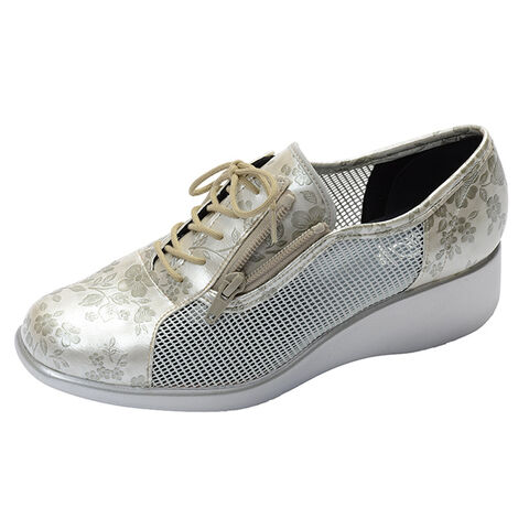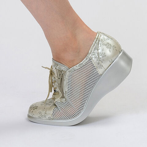 側面に施された花柄のメッシュデザインが、上品な華やかさと涼やかさを演出する一足です。