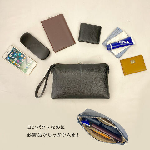 上質な姫路産の牛革を使用したクラッチバッグ。ポストミシンで仕上げた美しい曲線が特徴です。