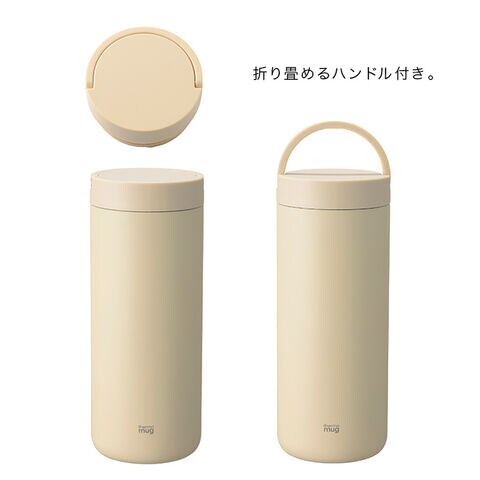 片手でさっと持てる折りたたみ式のハンドルは、荷物が多い日や子どもと一緒の外出でも便利。