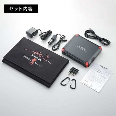 【セット内容】ポータブル電源、ACアダプター、DCアダプター、ソーラーパネル、接続コード、取扱説明書