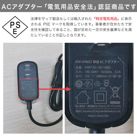 【PSE適合】日本の電気用品安全法(PSE)の技術基準に適合した電気用品です。