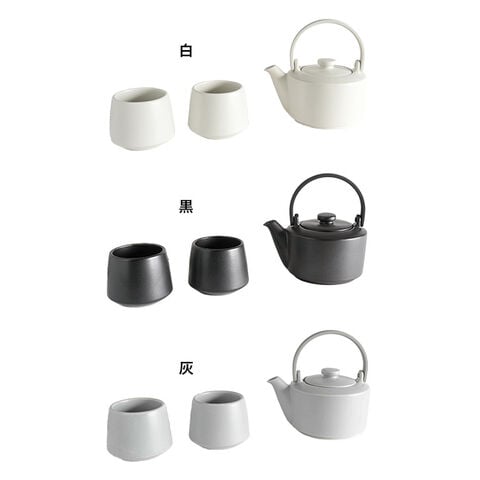 【素材】[土瓶急須]本体:磁器、茶こし:ステンレス、ハンドル:ナイロン [湯呑み]磁器