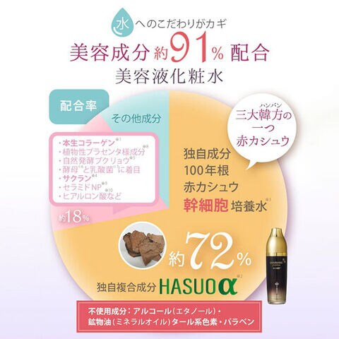 さらに、独自の複合成分HASUOαやセラミド、乳酸菌など、こだわりの成分を凝縮しています。