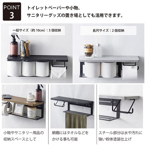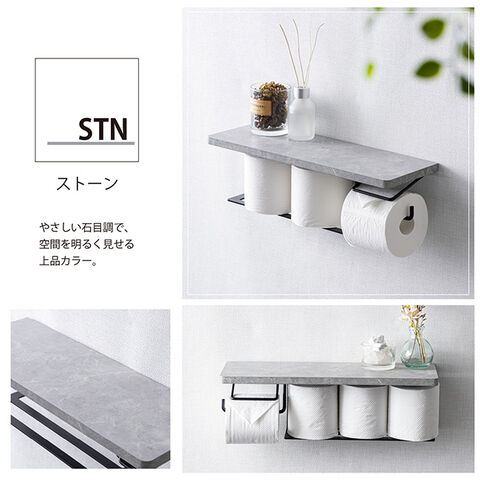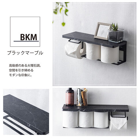 【ブラックマーブル WJ-55 BKM】 左右兼用 トイレットペーパーホルダー ストック収納タイプ(トイレットペーパー ホルダー おしゃれ 棚付き トイレ 収納)※1枚目の画像は代表イメージのため色・柄が異なる場合がございます。2枚目以降で色・柄をご確認下さい。