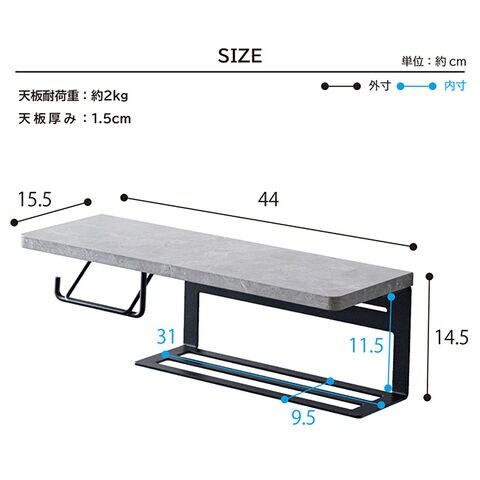 【サイズ(約)】[本体]幅44×奥行15.5×高さ14.5cm [天板厚み]1.5cm