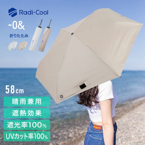 【ベージュ 52385】ゼロアンド -0& Radi-cool 耐風折りたたみ傘 58cm LDB-RDC-58PM(日傘 折りたたみ 完全遮光 軽量 大きめ 折りたたみ日傘)※1枚目の画像は代表イメージのため色・柄が異なる場合がございます。2枚目以降で色・柄をご確認下さい。