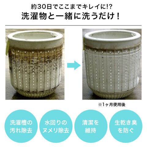 洗濯物と一緒に入れるだけで、洗濯槽の黒カビや雑菌の繁殖を抑えて、清潔な状態を保ちます。