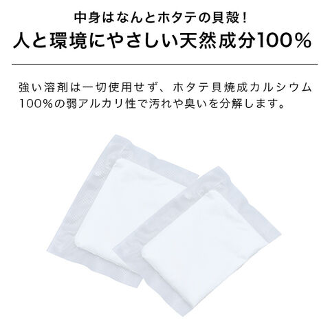 ホタテ貝殻から作られた焼成カルシウムを使用した、環境にもやさしい洗濯槽クリーナー。